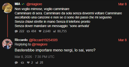 >>219976096Che poi ma che cazzo pensano, che gli uomini non devono guardarsi le spalle? Anche solo portare fuori il cane la sera al parco è pericoloso porca troia