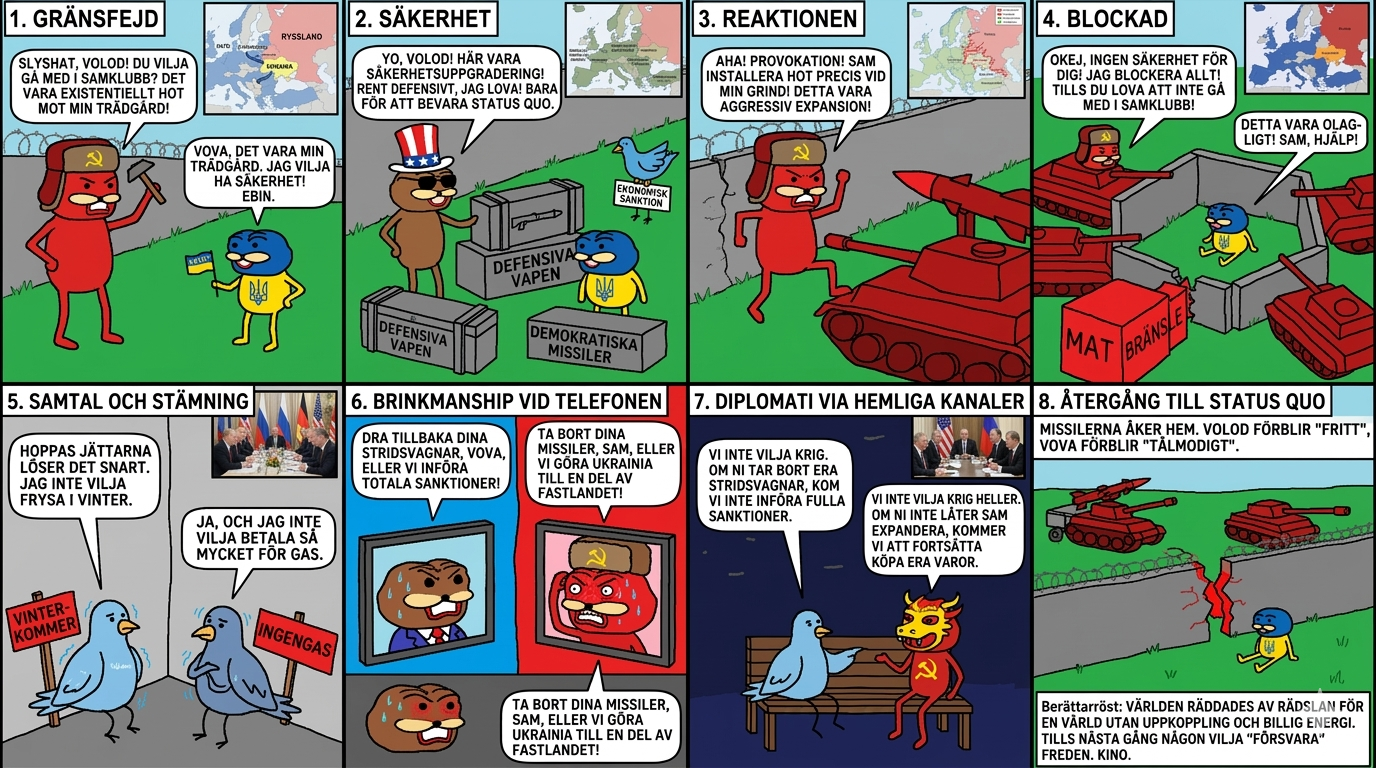 När man lagar en falukorvsgryta på geopolitisk nivå räcker det inte med att ha en dyr kniv; om man vräker i sju sorters peppar och sen stänger av fläkten, då blir det ingen middag - det blir en evakuerings övning utan vuxenpoäng.