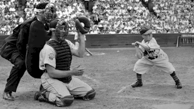 >American League president Will Harridge, saying Veeck was making a mockery of the game, voided Gaedel's contract the next day. In response, Veeck threatened to request an official ruling on whether Yankees shortstop and reigning American League MVP Phil Rizzuto, who stood 5 feet 6 inches (1.68 m), was a short ballplayer or a tall dwarf. life was simply better back then
