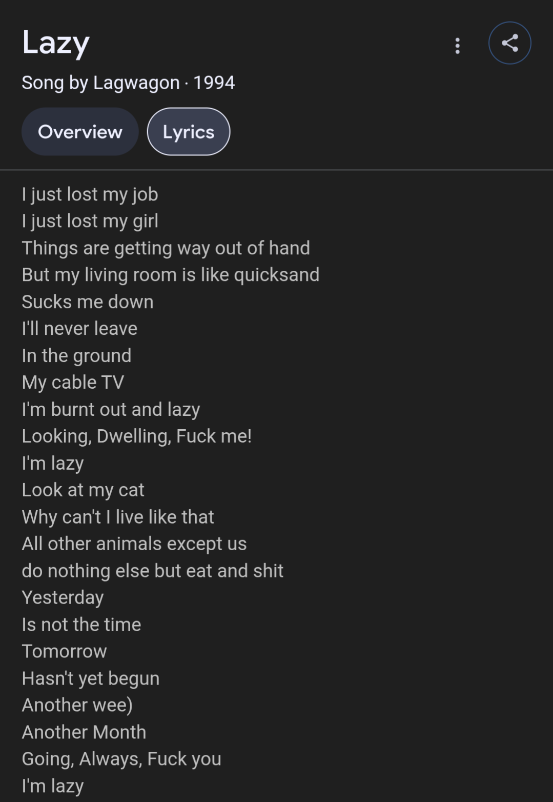 There was a long period of time where playing music at least brought me catharsis. It didn't make me happy but it made me immersed enough to distract me from anything else. I would sit in my room for days in a row and do nothing but play or practice guitar. I'd stop only to urinate or drink water. I wish I could care even 1/10th about anything as much as I did music back then. I'm not even good at it either, despite being well in excess 10,000 hours or whatever they say makes you an expert at something.