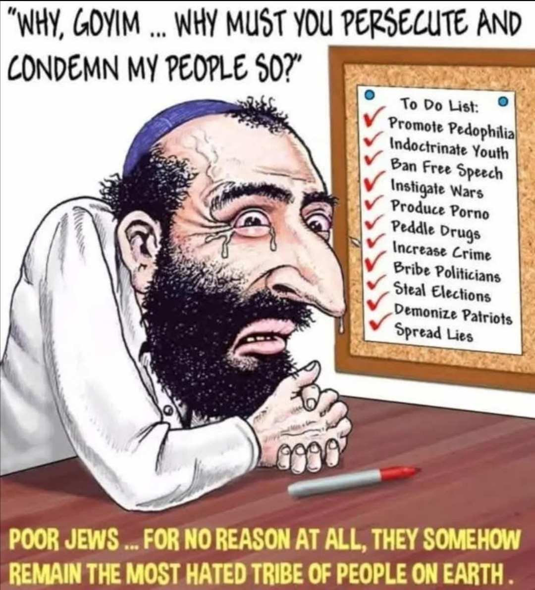 >>220026083Waar denk je dat ik hen voor belde? Ze hebben met de dood te maken.Zij propageren dat onze vrouwen verkracht worden door nikkers, kleine kinderen, dat ze 2 pappas hebben, homo zijn. Behartigen het idee dat ons volk niet veilig meer over straat kan. Kanker mafkezerij van ze.