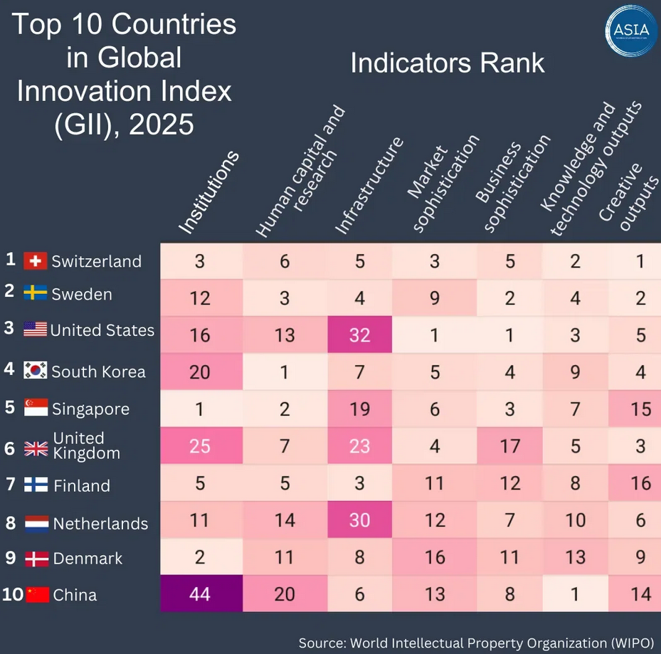 >>220032771I don't want to trash your chart, but the only meaningful column is the "Knowledge and technology outputs", where China ranks first.