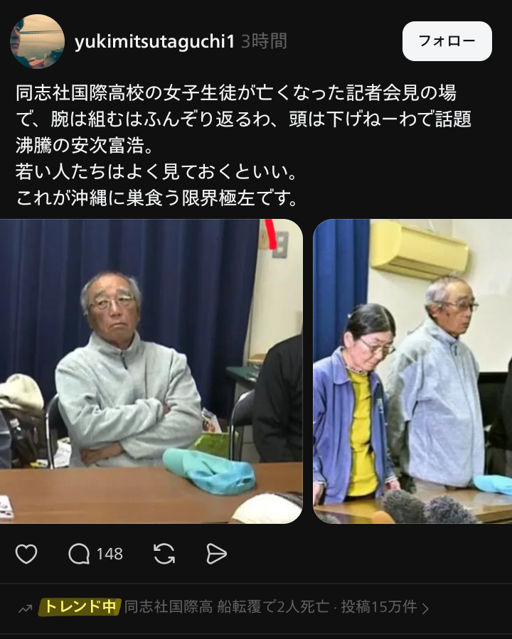 「私たちは日本人だ」沖縄〝先住民族〟論に反発元沖縄県議ら3人国連人権理事会で主張へhttps://www.sankei.com/article/20260304-O7U7GF54EZNBLG625HDTSCHJ5A/国連が国民の分断を煽ってたらアカンわしっかり主張したってー