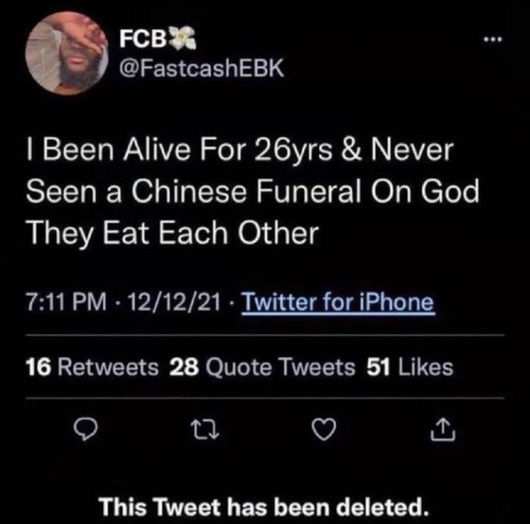 >>220052033I went to my ex girlfriend's uncles funeral in China onceWas lovely actually but extremely weird knowing he died in a factory accident like a liveleak video