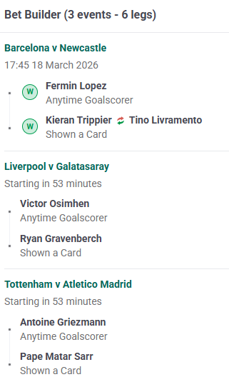>>220063684my 8/1 bet builder for the barca newcastle game already paid outgoing to put another one on the liverpoo game