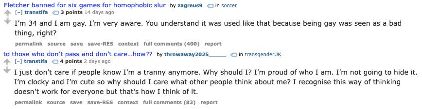 found a schizo tranny youtube channel, proper loose cannon this one, reckon he'll be on the 41% express ere long