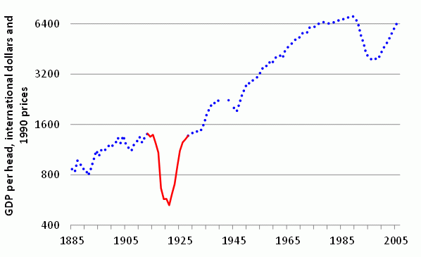 Stalin was good, don't get me wrong. But the Duma could have accomplished everything simply by raising tarrifs.Millions of industrial workers were lost.This graph shows GDP, which is not my intention as I wish to demonstrate industrial production. But just replace GDP with industry and the image is basically the same.