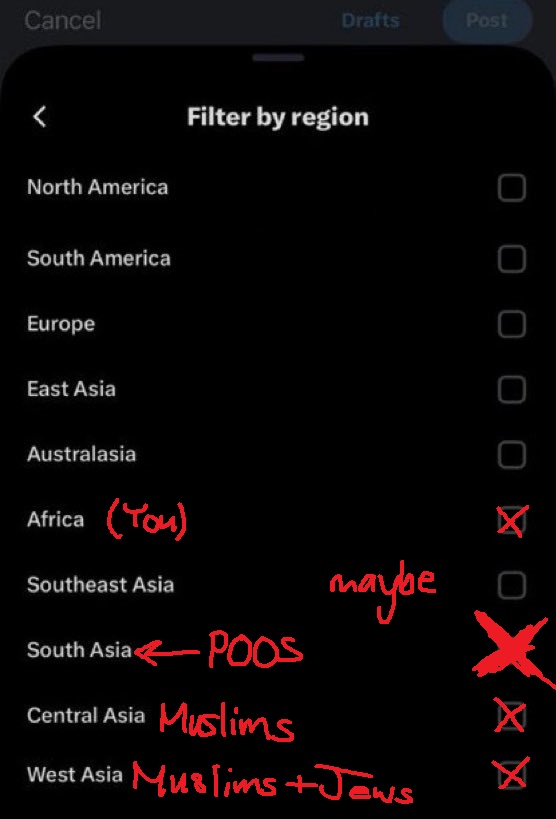 X is expected to have region filters in the futureHere's my list. SEA is a maybe because I have friends and follow accounts from SEA.What do you guys think?