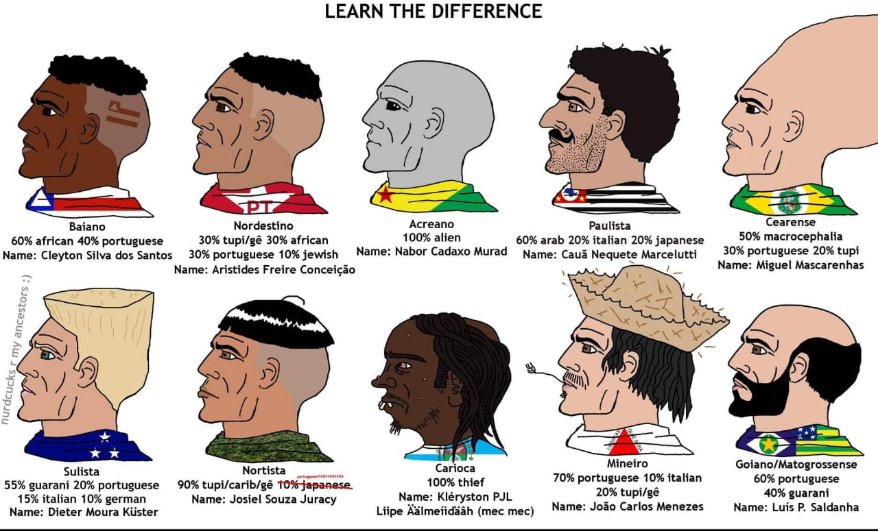 o pior é aqule negro de xique-xique que acha que é um bantu negrasso e o siciliano que acha que é pardo indiano.