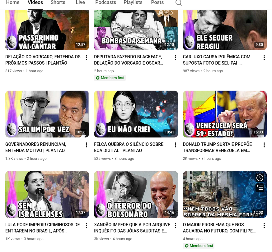 >>220120675https://www.youtube.com/watch?v=kpZcts8S3JUSó essa daqui bateu mais de 100 mil das notícias recentes. Ninguém liga para a lei Felca. Crianças? Fodam-se. Liberdade de expressão? Dane-se. Fechamento no cerco de monitoramento das bigtechs? Tô nem aí. Judeu tomou voadora na Bahia? Real merda.