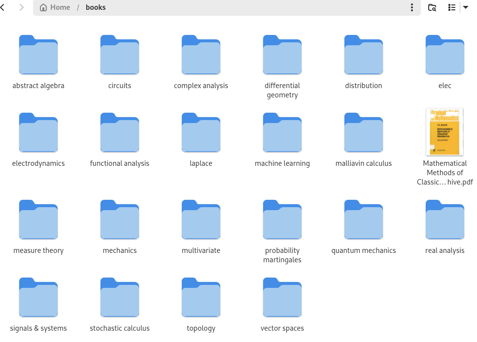 Tem coisa que eu aprendi e li anos atrás mas esqueci (mecânica clássica, sinais e sistemas). Tem coisa que nunca li (mecânica quântica, análise funcional/complexa). Tem coisa que eu li e ainda sei boa parte "decorado" tipo ciclo inicial de matemática da engenharia. :/