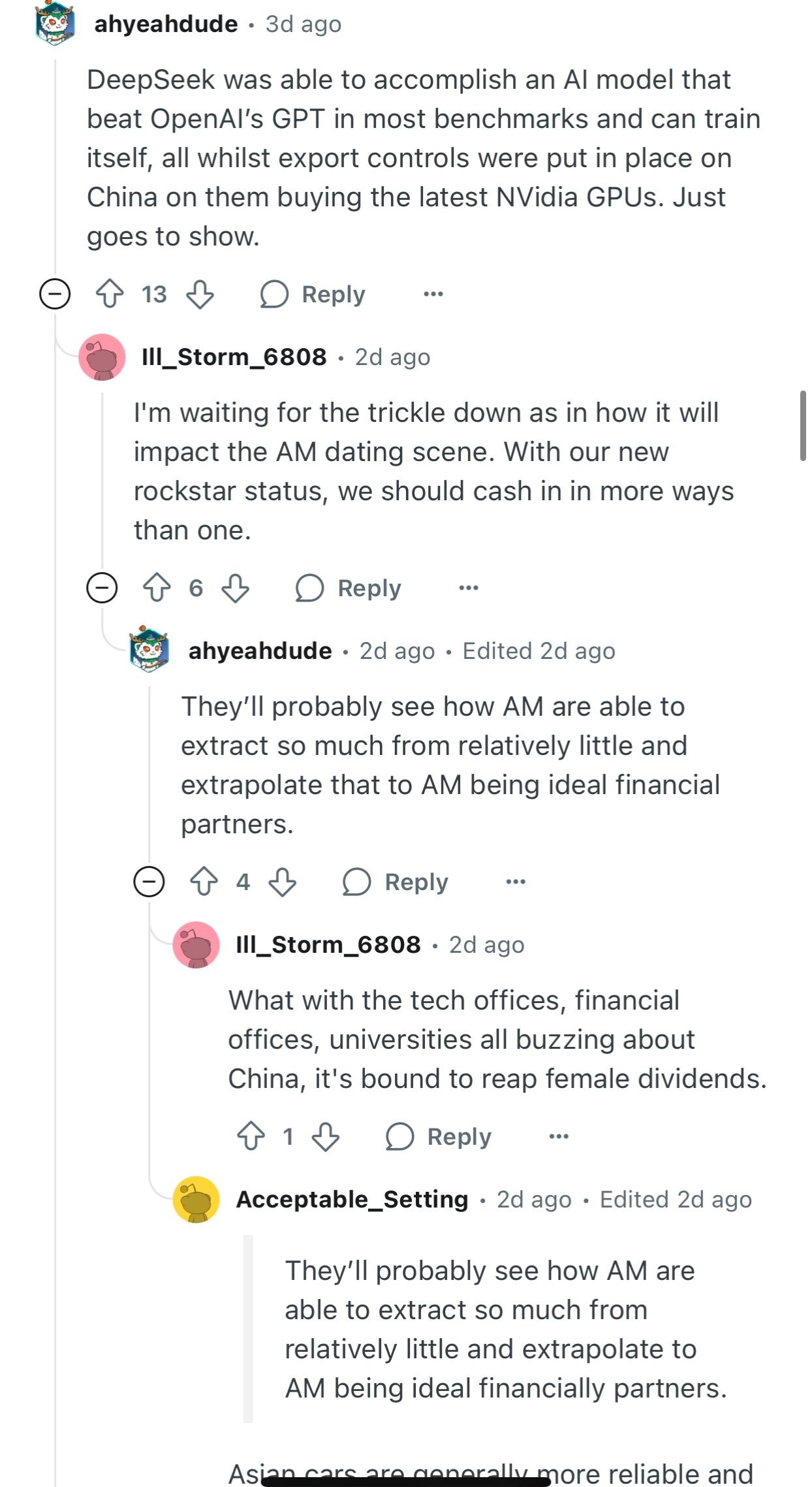 Just as average IQ doest paint the whole picture, those IQ posters in such discussion also doesnt paint the picture for the whole participants, but only substantial chunk of it, which make sense since most posters on this board are stupid losers. The fact that they cant even bring up actual nuanced arguments and have to rely on statistics that they dont even understand how to use is almost enough to deduce their level of critical thinking.