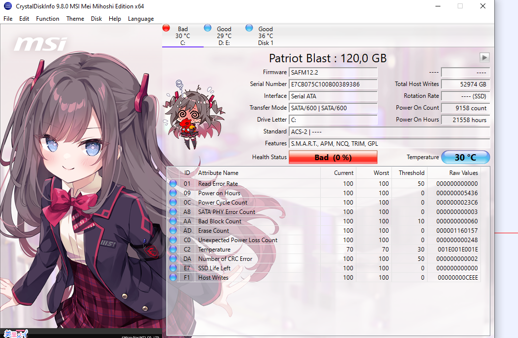 animka mówi że ssd z systemem jestw słabym stanie