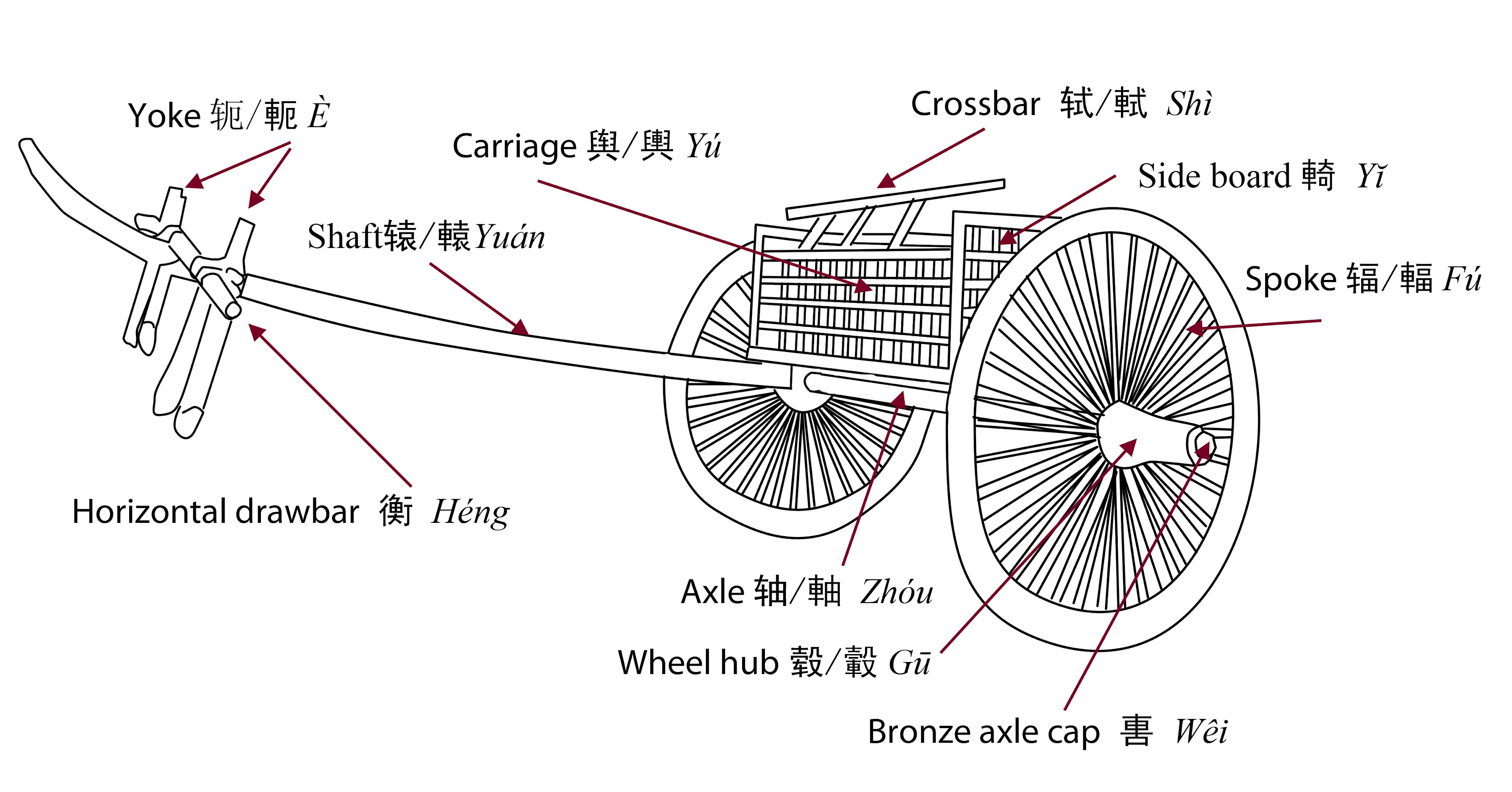 >>220189264it's interesting that you can tell how important chariots were to ancient China by how common these words are in other compounds辐射 - irradiate - shoot out like spokes of a wheel舆论 - public opinion - in the carriage南辕北辙 - contradictory behaviour - shaft pointing south wheels pointing north轴线 - axis - axel line