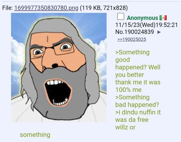 >>220188820Als God het deed was het per definitie goed, is meer wat ik bedoel
