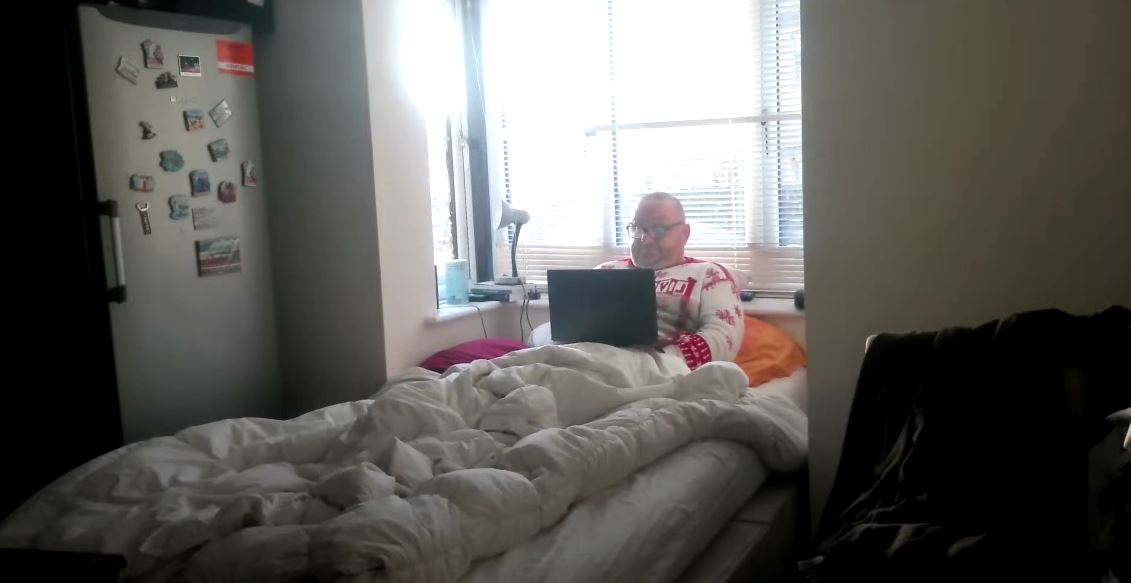 In bed. Farting.
