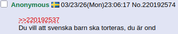 >>220208976Hoppas du blir rånbögsmördad