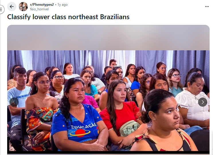 Wrong again. The Brazilians that look like you (a basketball american) are some lower class people from the southeast and Bahia. Outside of Bahia nordestinos generally don't look like you and the discrimation they suffer is not simply "anti-blackness" as they are very far from the blackest Brazilians