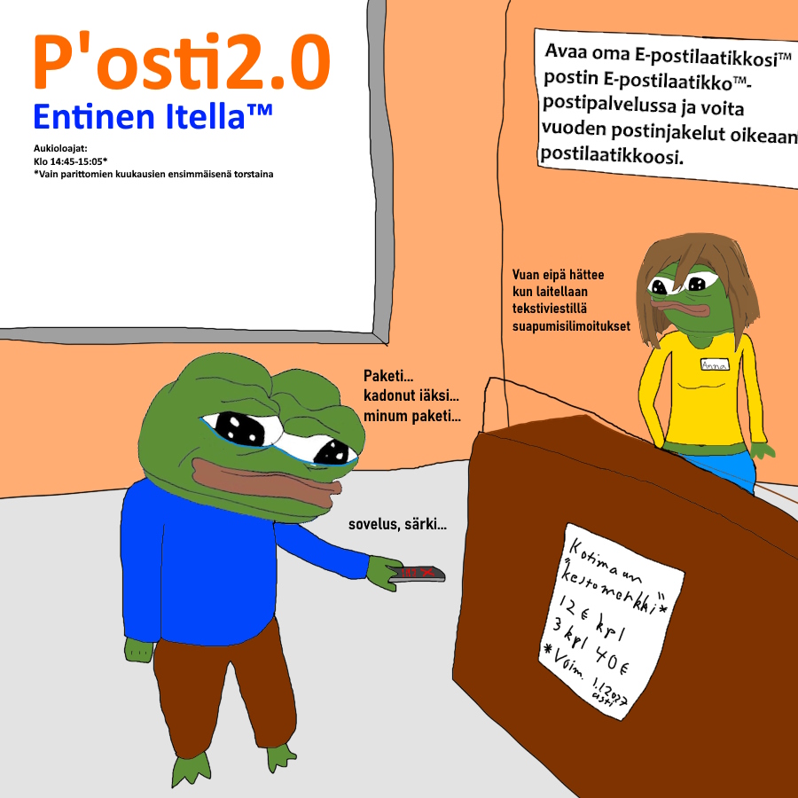 >>220216588joo en mee enää koskaan ulos kun ne tulostaa ton kuvan ja laittaa seinälle miten posti on kiusaamisvapaa alue ja heillä on koulutetut annat siltä varalta jos täriseviä pauka otuksia joutuu käsittelemään