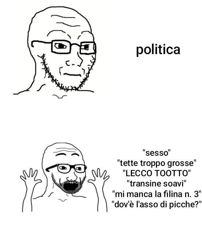 >sì, è trans perché non gli interessa la politicaL'assoluto stato del filino medio, s'è messo con un frocio per disperazione