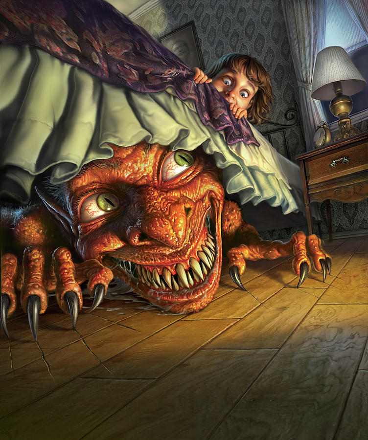 child on the bed: /brit/monster underneath: mousey