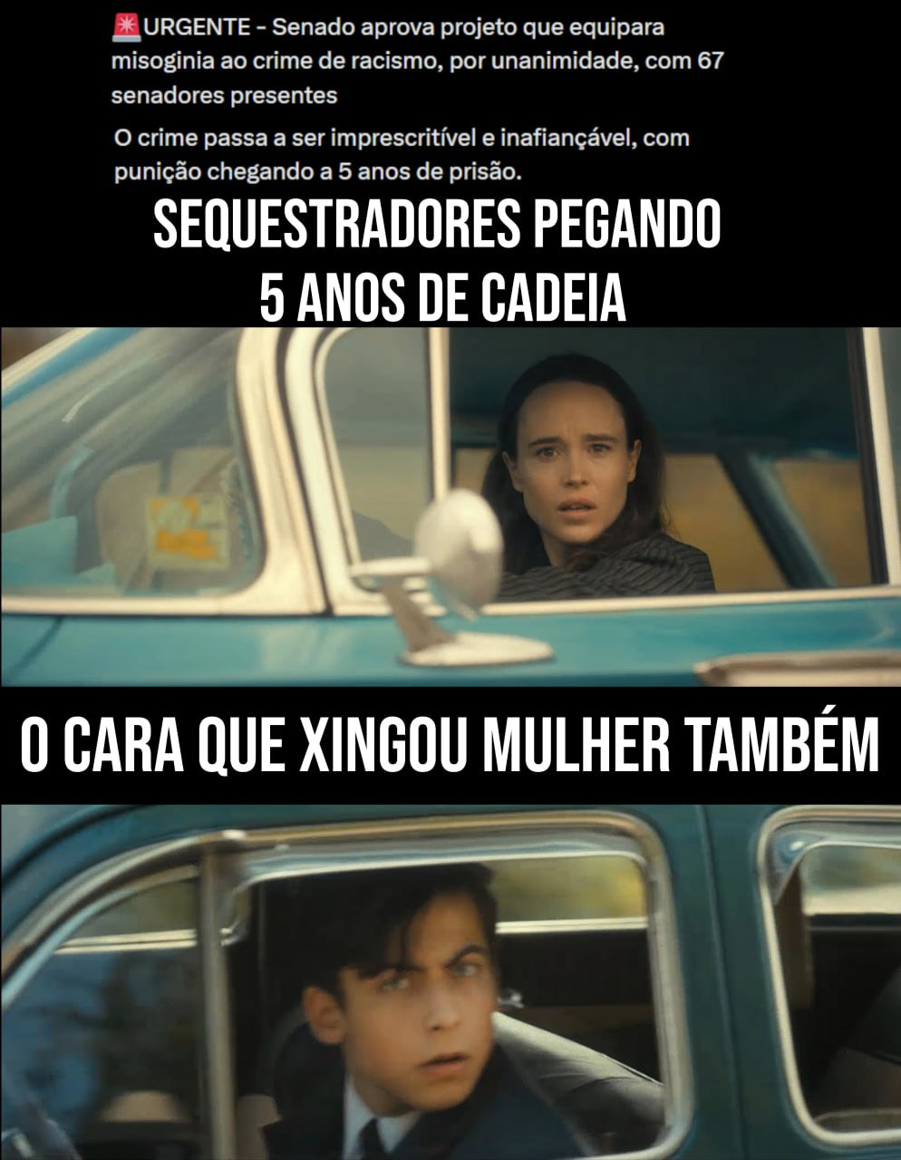 O Brasil não tem leis o suficiente, então passaram mais uma. Lei para criminalizar misoginia. Apoio total do congresso "mais conservador da história", literalmente unanimo o voto e nem precisou de falcatrua como a Lei Felca de fazer votação de emergencia.