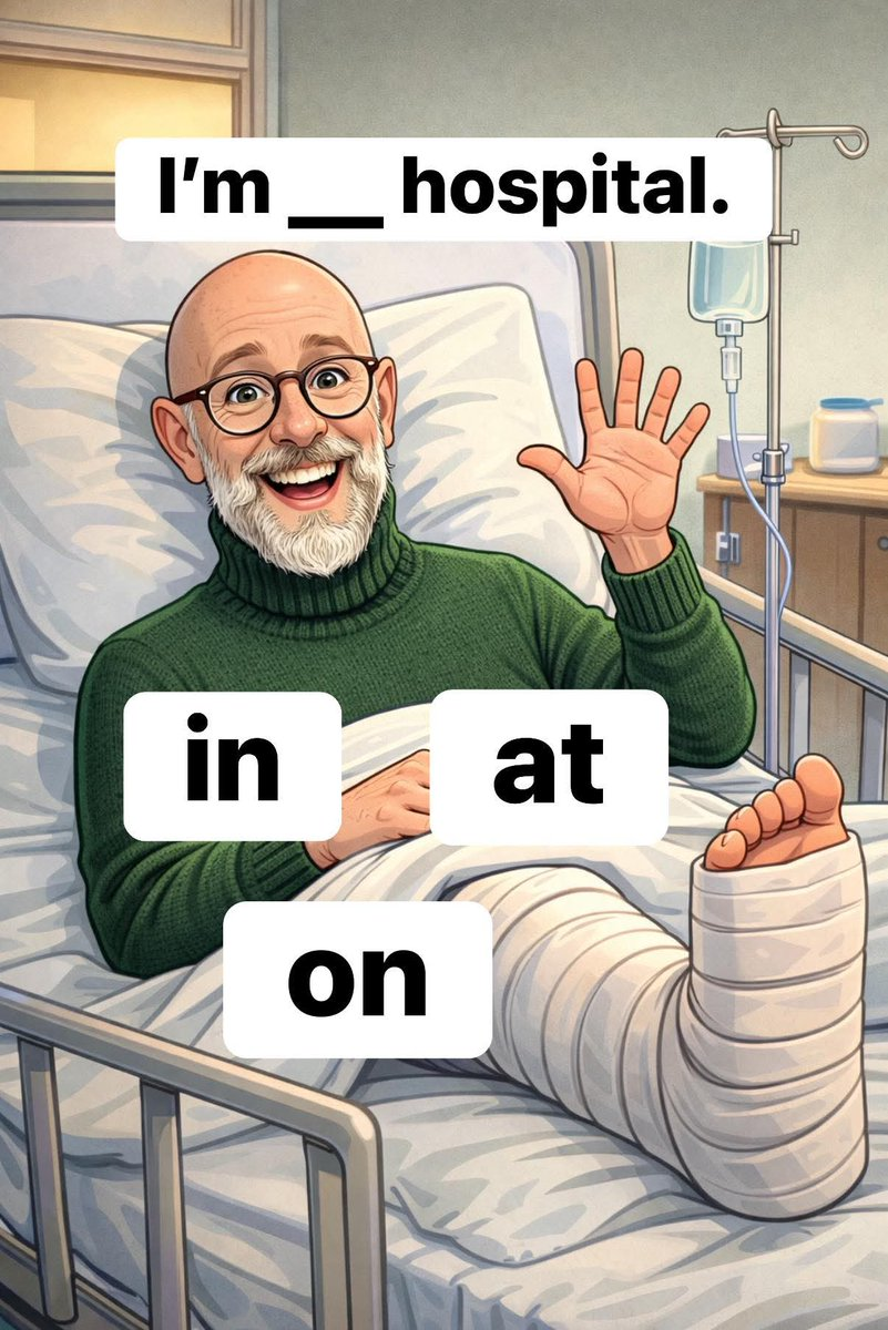 Still wouldn't say I'm at hospital, that's only used for third person