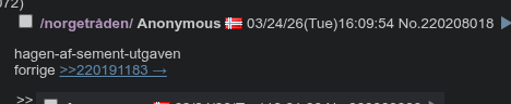 >>220241758hagen af sement har vært en norgetråden-klassiker siden kåråna
