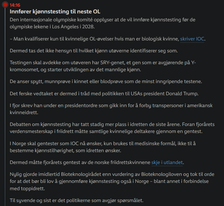 >>220254565>kvalifiserer kun til kvinnelige OL-utøvelser hvis man er biologisk kvinnefytti helvete, dette er fÅlkemord og nasistisk!