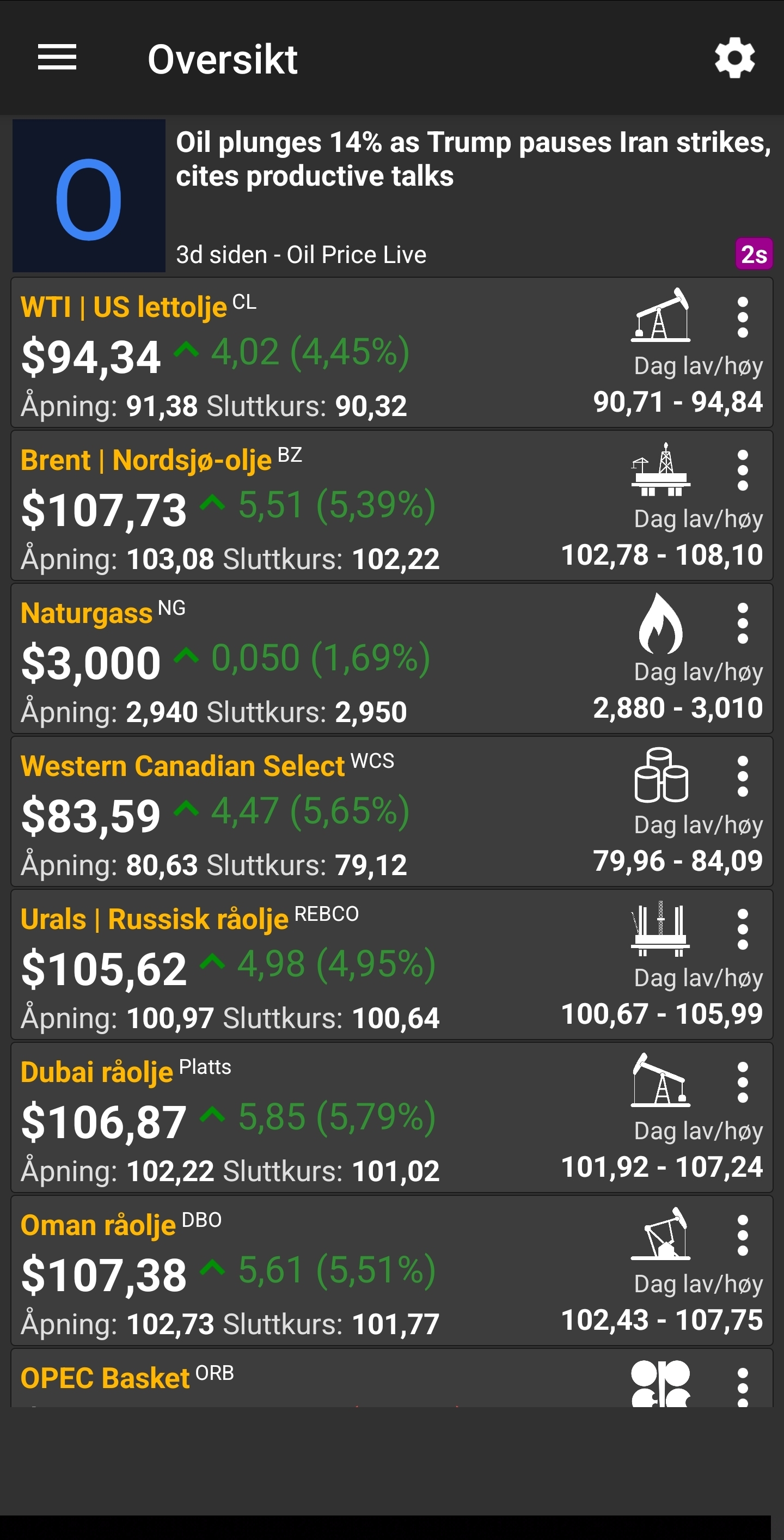 Suser norge nå egentlig? Sjekk brent olje? (Vanligvis ned på 70)