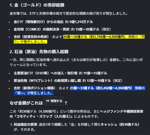 今な…金の価格が 下落したろ?あれな…金を売った金額と ほぼ同等のマネーが 原油先物に流入してるんよイーーーヒッヒッヒまあ 普通に考えて…このあいだ 説明した ブラックロックのアラジンAI やろうな~~世界中の金融機関投資期間政府ファンド……連動しとるらしいから知らんけど…オーーーーホッホッホ