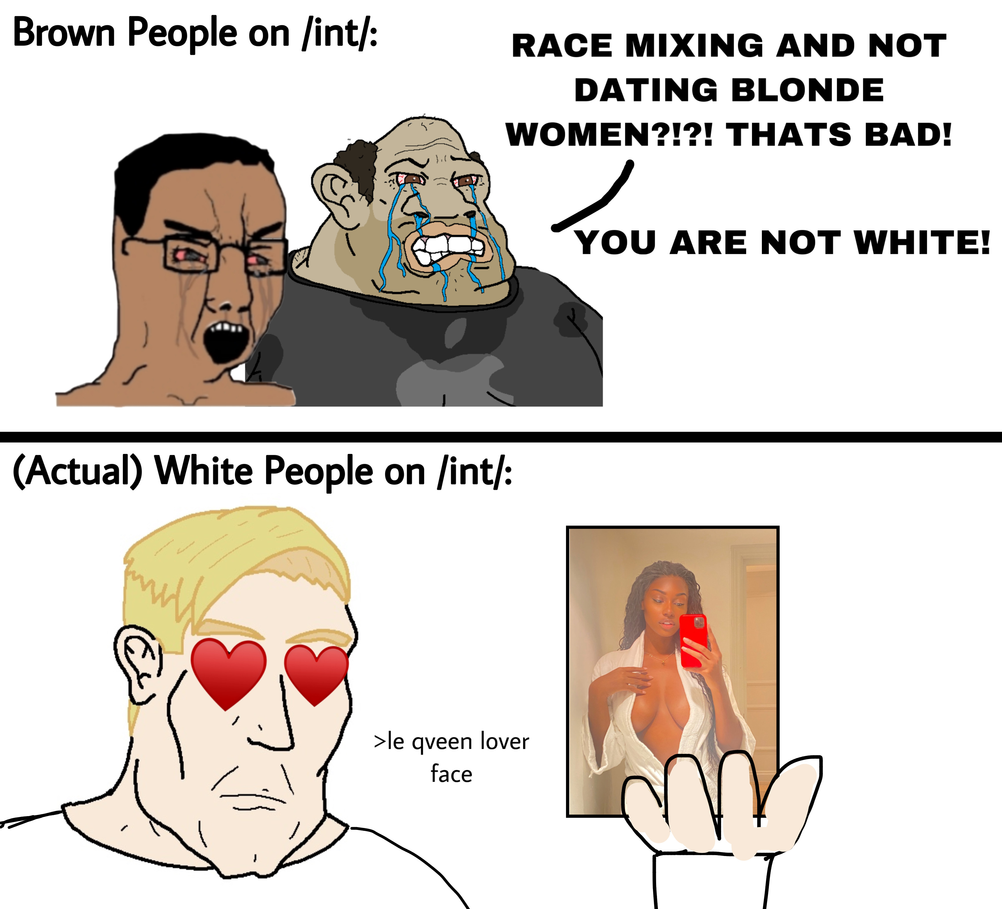 >>220247446It's not 4chan race autism though, it's a different way of analysing stereotypes. Both sides of the spectrum do it. I've heard people call English 'half-Italian, half-German' in an attempt to deny England a linguistic heritage that can be taken pride in. Yet, by presenting English as 'mixed' they assume a pure German and Italian to prove the point.It's like when someone makes a montage/collage of French cathedrals, Shakespearean plays, Italian art, etc and calls it 'white culture' to dab on blacks and gets called a bigot who shames the West, but when Lottie and Ottilie do the same thing and call it 'European culture' to attack Brexit voters, it's socially acceptable.