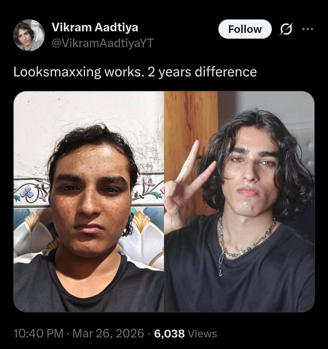 probably got rejected by a girl in his grade and is now going down the looksmaxxing path