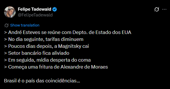 Engraçado essa lei Felca e lei da misoginia aparecem justo quando o Vorcaro tá preste a deletar geralO (((setor bancário))) (que domina o congresso) sempre inventa essas viadagens quando tá perto de ser exposto