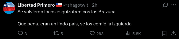 >>220265892>os bostileiros acham que o problema do brasil sao os politicosnão deixa de ser,porque políticos não caem do céu tampouco brotam do chão. Eles vem do povo e o povo bostileiro é no geral abusado,violento,aproveitador,desrespeitoso e desleal