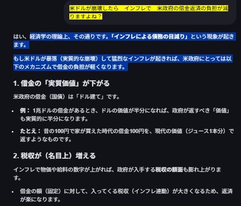 いわゆる アベノミクス的 経済政策やなちょっと それを 過激な 風味にしてるけどなそのくらい 簡単に 瞬間的に 借金帳消しできるから (その負担は 実質 アメリカの庶民が負うんやけどな)オーーーーホッホッホ