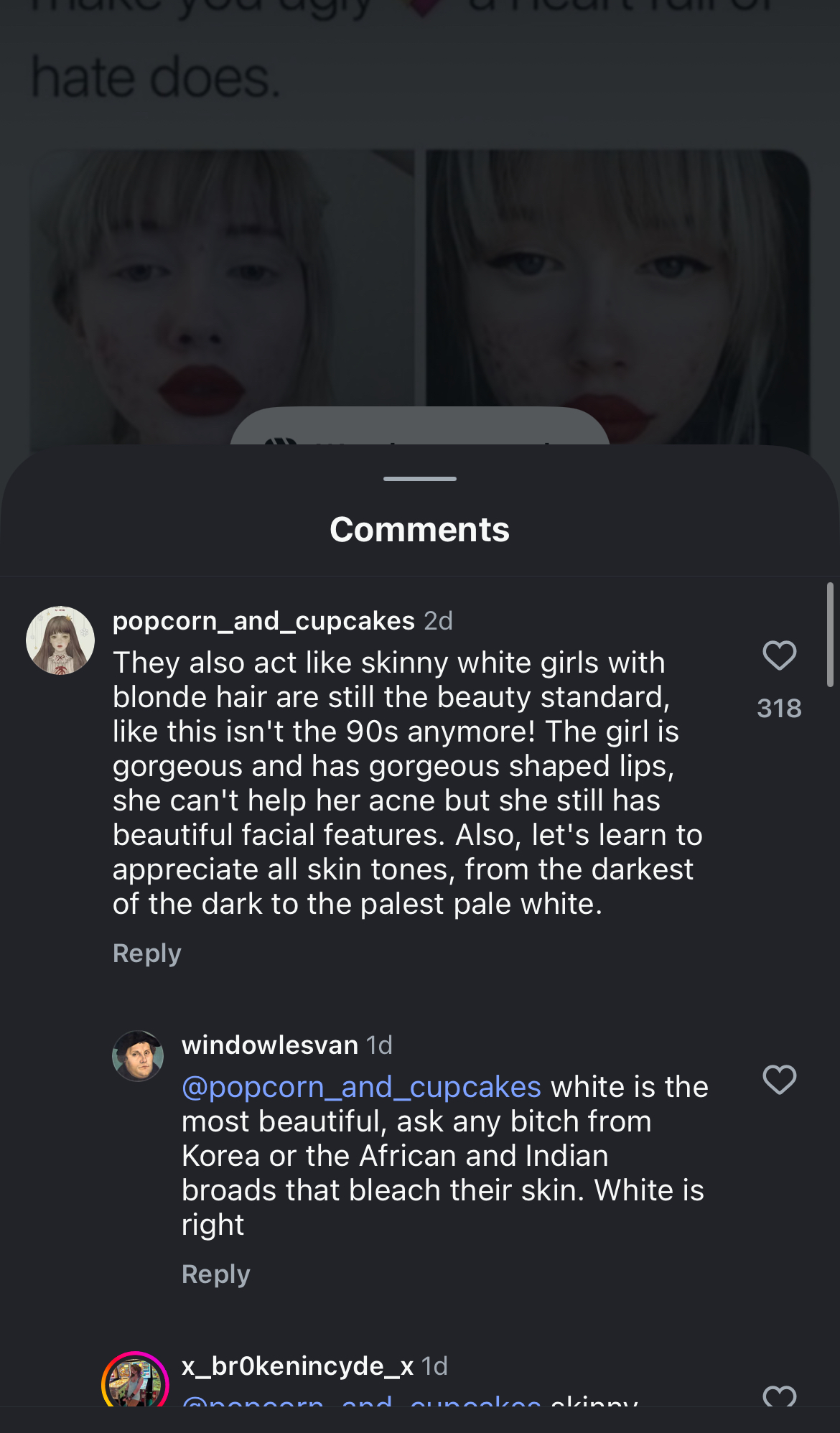 >>220272946Only dark girls and blonde ginger twinks get upset. That’s why we don’t get blonde models or dark haired male models anymore like the 90s.They pump up Chris hemsworth,Ryan Ronald’s,gosling ,cardi b,zendaya or Lizzie because those 90s models all broke them .