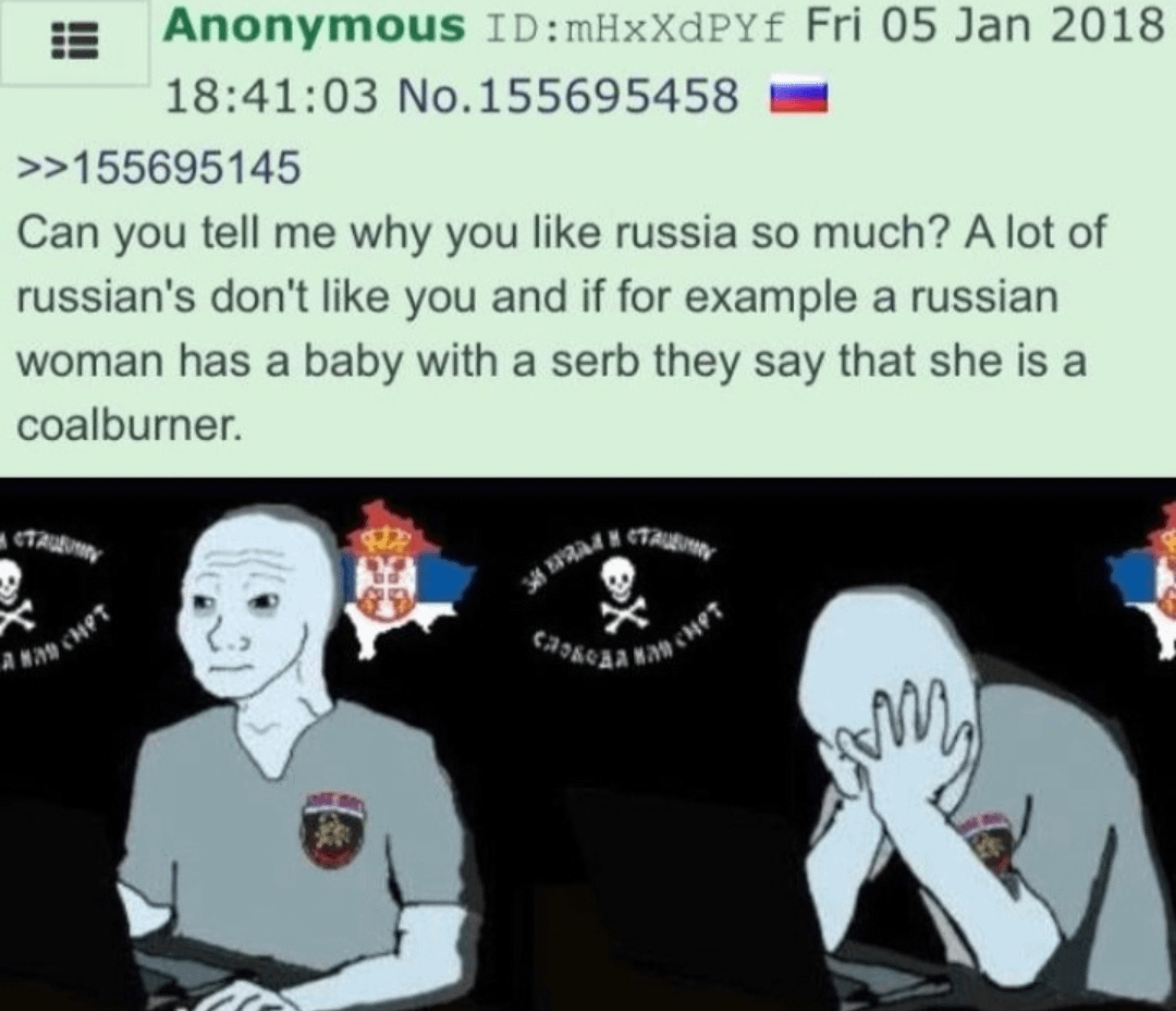 >>220278821As someone with a better passport, light skin and eyes. The Russian women are pretty easy desu. But don't expect anything good to come of it. But I'm sure you can find some Russian woman that wants EU status terribly. As a rule though women typically like their own men. Anyway be careful >>220278683>My family >2000 years, raiding across Europe, stopped when they literally couldn't go west anymore. Figured out boats that could survive Atlantic. Went west as far as they possibly could again. Me:, got bored of west. Starting the path back east again,>Your family>Crossed the Carpathians once because ????. Bootlicked the various ruling empires so hard invented an entire mythos you're not Serb and barely slav>Still in the same place you were 1300 years ago. Probably only less than 100km in that timeAnglo Faustian spirit, sure you wouldn't understand