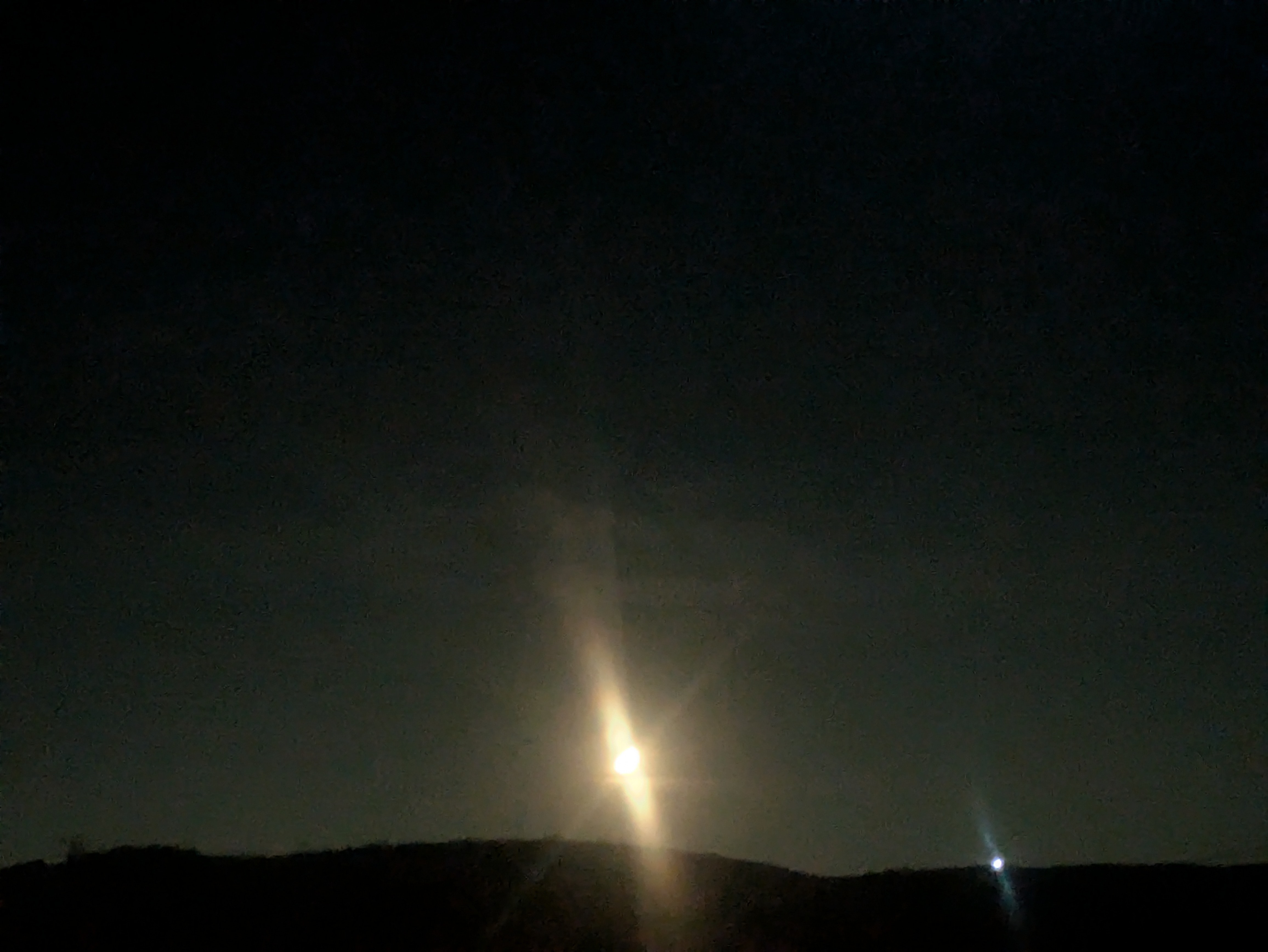 I'm out in the mountains on California and though the moon is out, there's a strange light at the top of the hill and I don't know what it is