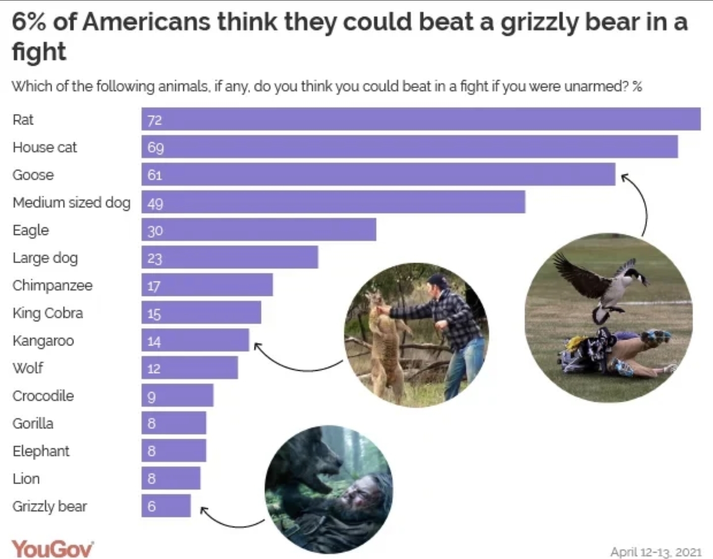 >>220281044>94% said they couldn't beat a bearI don't get why this was so funny either, the same poll had like less than 70% of Brits claiming they could beat a rat too and under 50% saying they could beat a goose. That seems far more concerning than the 6%