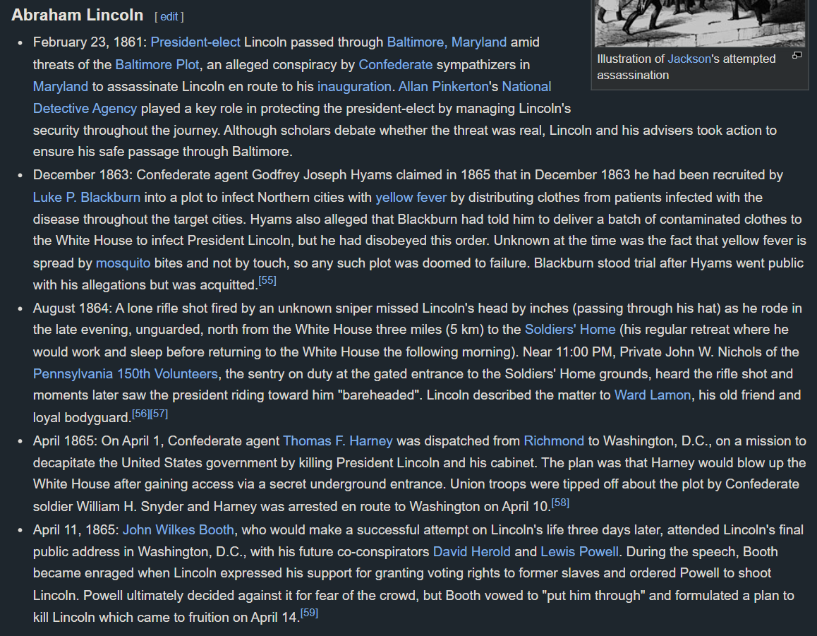 >Previous assassination attempts on Abraham Lincolnthis guy was really hated huh?guess he probably had it coming