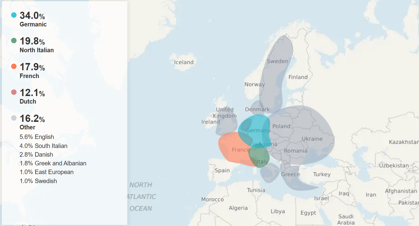 >>220297701I think it's about the same as me in terms of different groups, but you're more Southern European