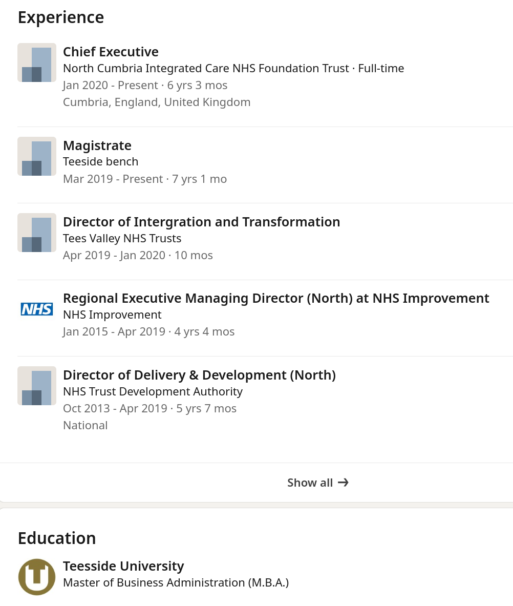 >>220302761>>220302798here's her education and experience btwuseless degree from shit uni and basically worked her way up from useless office job to useless office jobnone of those jobs have real performance measures, you just stick around and work the career ladder