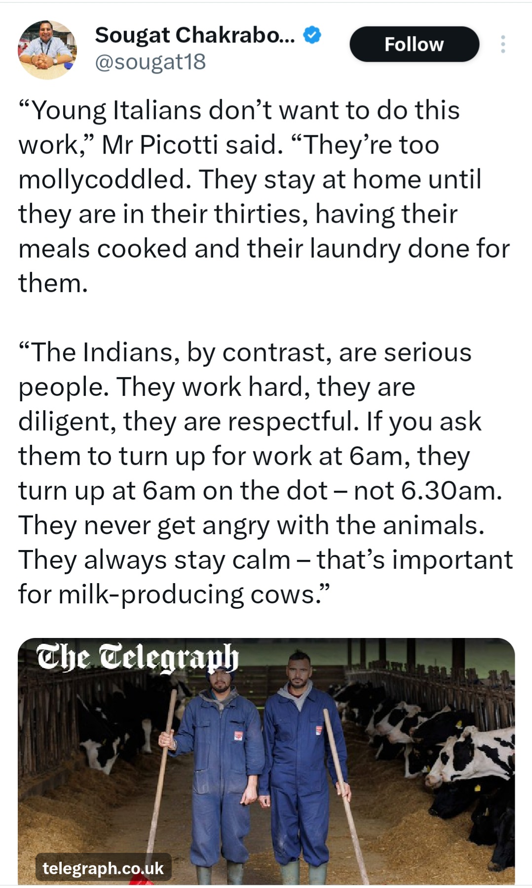 >white people won't happily do this filthy backbreaking labor for no benefits and minimum wage!>we couldn't possibly make working conditions better, we simply must import brown peopleWhy are bosses like this? They have ALWAYS been like this.