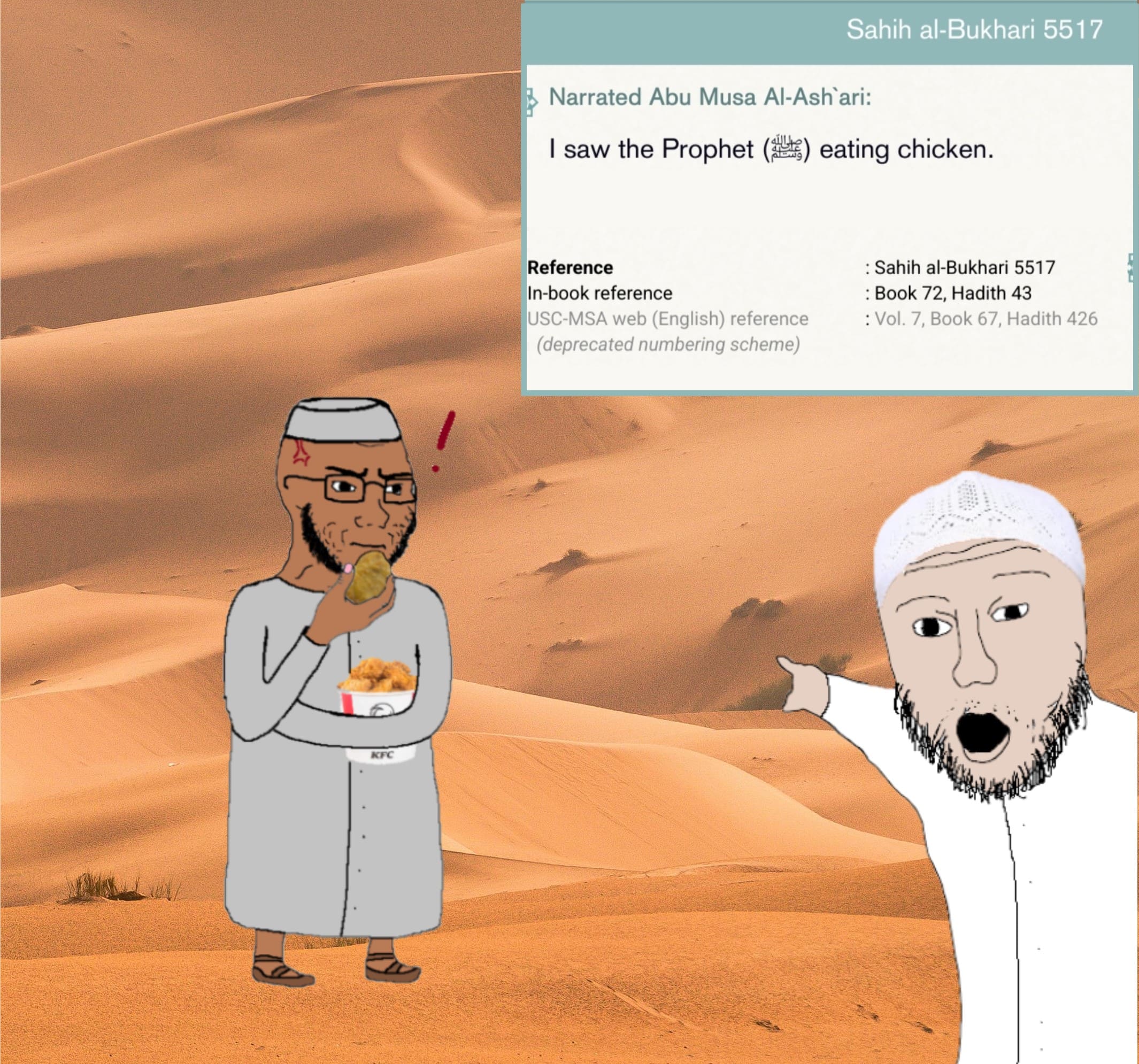 One of you niggas needs to make a hadithjak out of this. The founder of the world's 2nd most important religion pissing like a girl and having desert bedouins make fun of him while his wife watches is too absurdly comical to be wasted