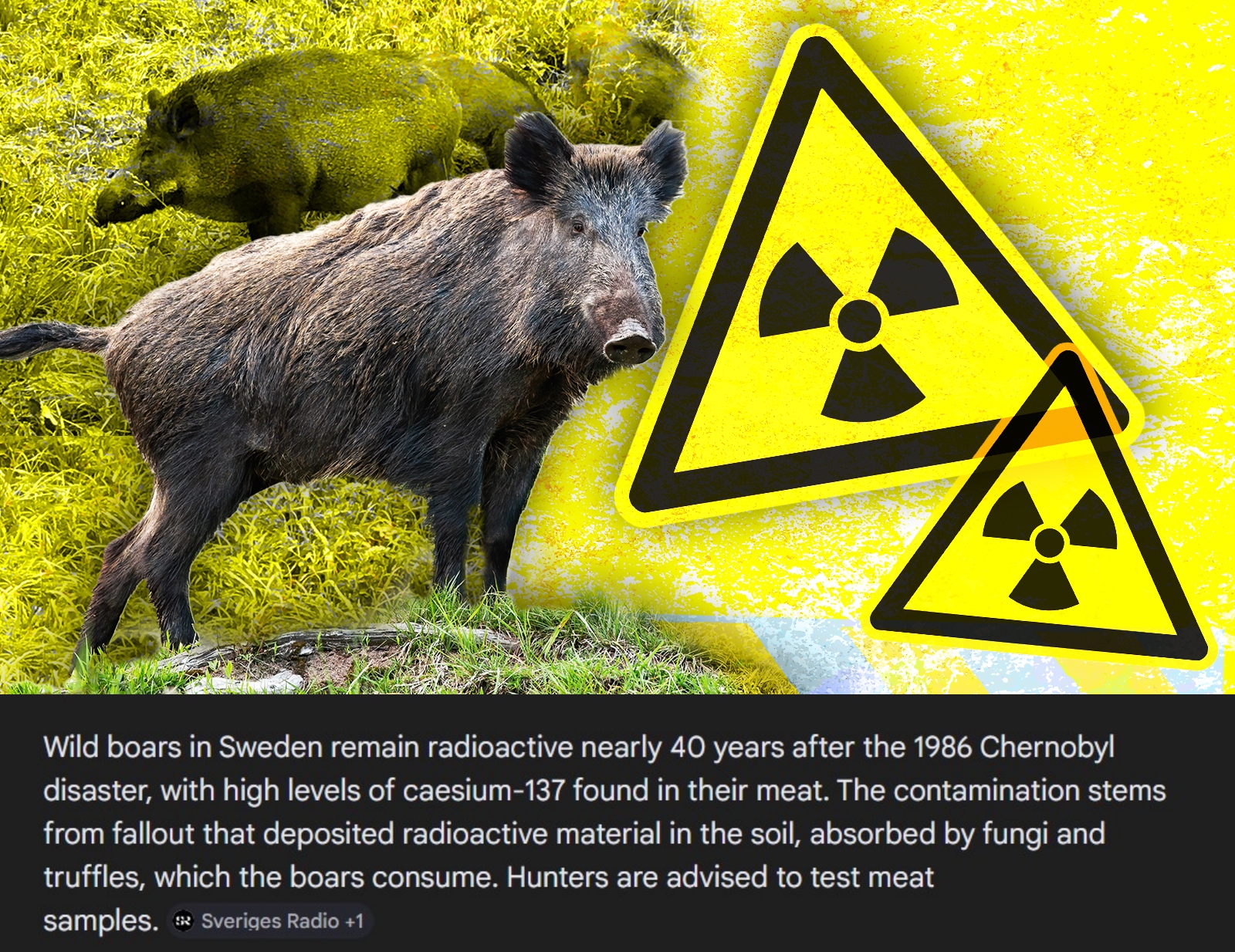 >>220318426Guaranteed. Boar is too good to be wasted. Sadly we can't eat too much of it and every boar has to be tested because some of them are straight up dangerous to human health. https://www.thelocal.se/20180123/record-radiation-levels-found-in-swedish-wild-boar