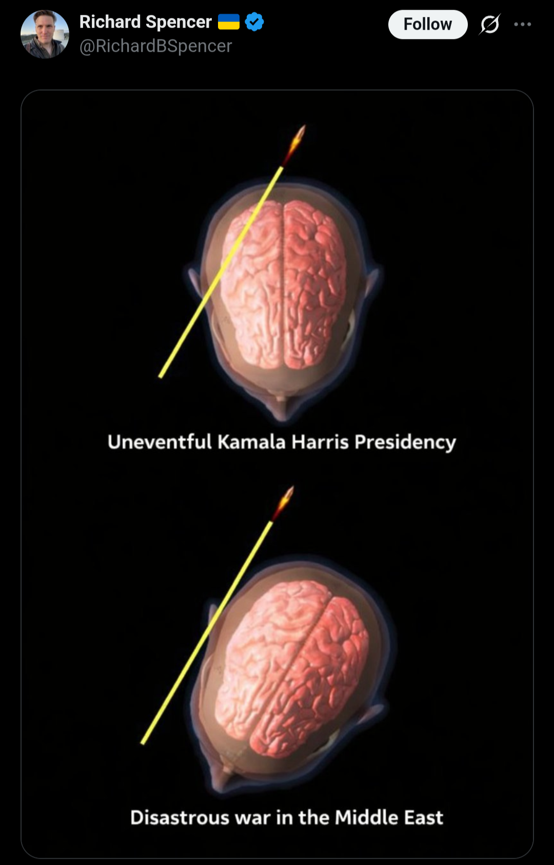 >trump får varje dag se en ihopklippt video med "höjdpunkter" från kriget >det beskrivs från källor i vita huset som "en serie klipp på grejer som exploderar" >samma källor säger att Trump blir väldigt arg och upprörd när nyheterna inte visar samma positiva resultat som hans "briefing" visar >källor bekräftar att Trump mestadels får information om amerikanska framgångar, att filmklippen inte ger honom en fullständig bild och att responsen från hans rådgivare brukar bli bättre när dragningen är positivt vinklad>men enligt NBC News finns det en oro i kretsen kring presidenten kring den dagliga tv-showen. Enligt källorna befarar flera personer att han varken får ta emot eller kan ta in hela bilden av krigetSå Vita Huset ger Trump en TikTok rulle med explosioner och säger "vi vinner, kingen" och det är allt han vet.