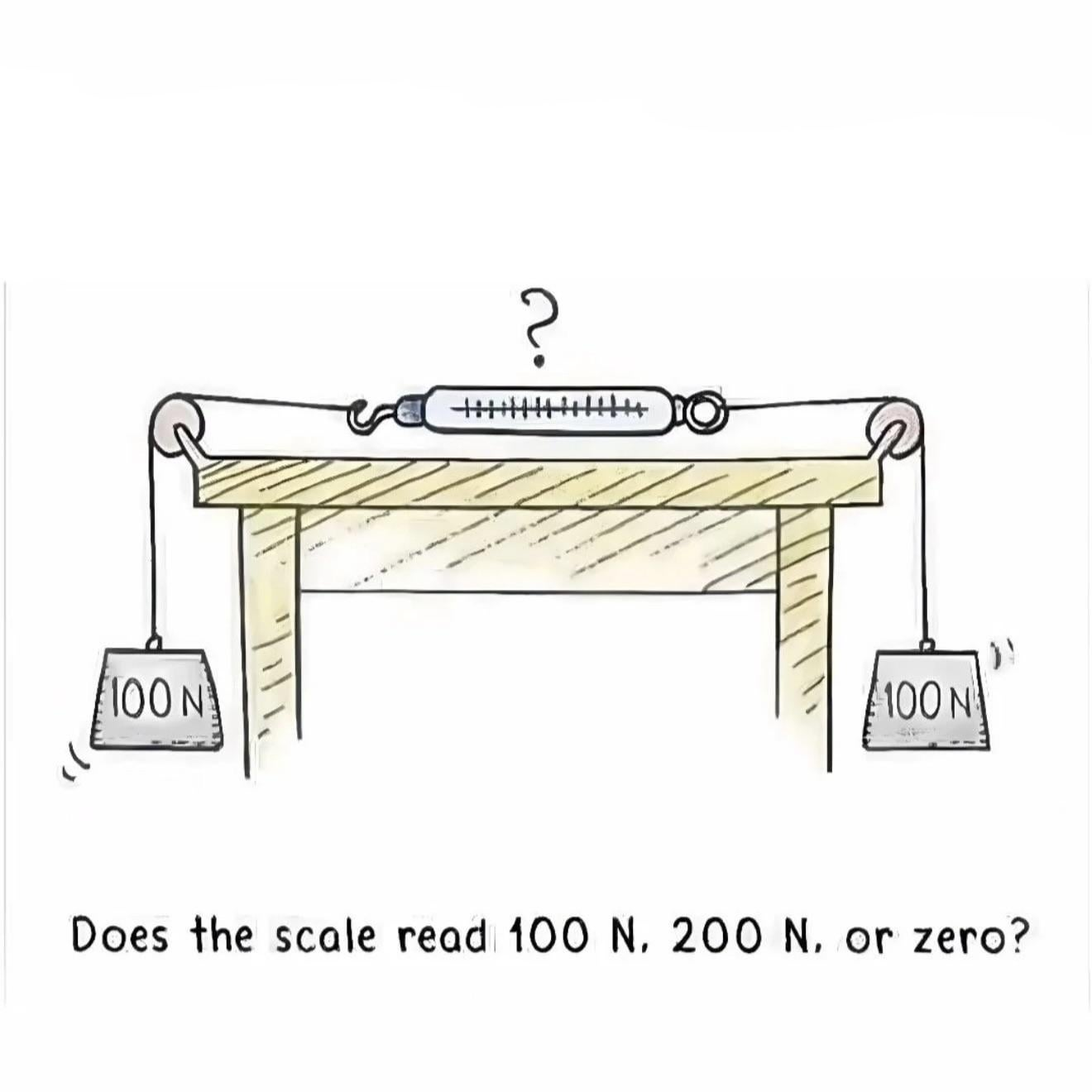 >>220338260Eu descobri sozinho, ora. E eu falei a lógica que eu usei: é como se tivesse só um dos pesos pendurados no teto, o gemini só confirmou que a resposta é de fato 100N. :/E explicando mais, é só pensar que no teto teria uma força contrária de 100N pro negocio ficar parado. A soma das forças tem que ser 0, então é equivalente a penduar um no teto.Faz mó tempão que eu estudei fisica 1, mas pelo que lembro, é essa a lógica.