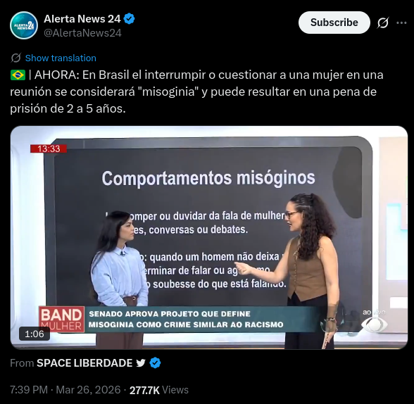 >>220335380pelo menos agora a lei da misoginia está protegendo elas dos memes ofensivos do redpills