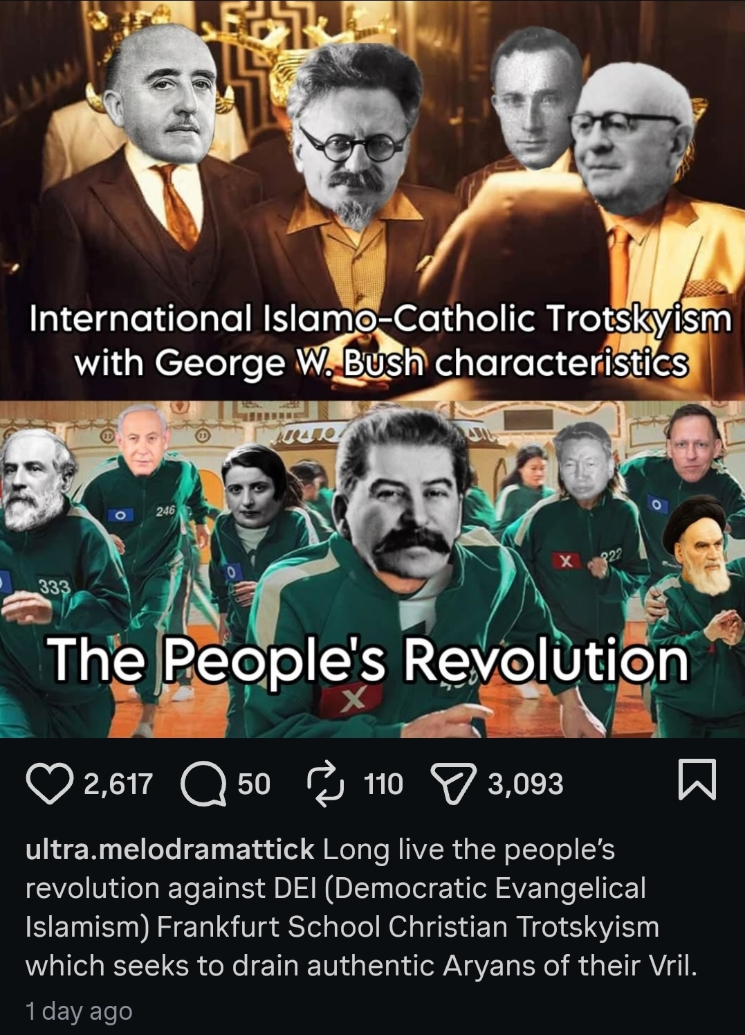 >>220347015>Peter Thiel, Ayatollah Khomeini, Ayn Rand, Stalin and Robert E. Lee on the same sideWhat the fuck am I looking at? What is this braindead meme ideology?